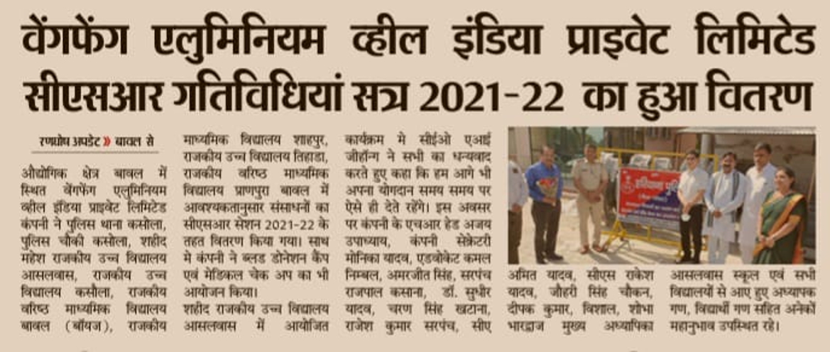 3月29日-3月31日,萬(wàn)豐奧威旗下萬(wàn)豐印度公司積極履行社會(huì )責任,為當地公安、電力、農業(yè)、工業(yè)園區和學(xué)校等部門(mén)捐款捐物,并在當地社區組織開(kāi)展了獻血和免費體檢等公益活動(dòng),受到了當地多家媒體的關(guān)注。