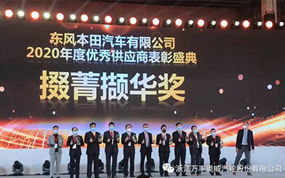 近日,2021年度東風(fēng)本田供應商大會(huì )暨優(yōu)秀供應商表彰大會(huì )在武漢隆重舉行,萬(wàn)豐奧威汽輪作為東風(fēng)本田供應商參加大會(huì )并喜獲東風(fēng)本田“優(yōu)秀供應商”稱(chēng)號。
